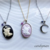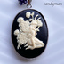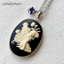 【送料込み】黒いお花の妖精カメオと紫色デッドストックスワロフスキーのネックレス