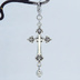 マスク・スマホチャーム アンティークシルバー ゴシック調デザインのクロス(十字架)とメタルビーズチャーム 金具変更可
