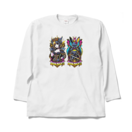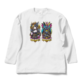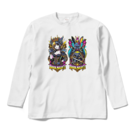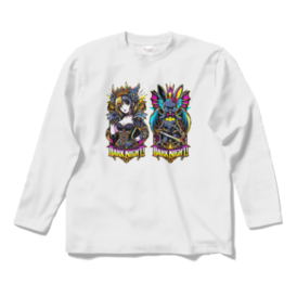 ロングスリーブTシャツ - XL - ホワイト深い闇夜にひっそりと佇む、魅惑的なコウモリうさぎの王女。彼女は、夜の静けさの中で光を放ち、月明かりに照らされると、まるで夢の中から出てきたかのような美しさを持っています。 この商品はpixivFACTORYで作られた商品です。サンプル画像は完成イメージのため、実物と異なる場合があります。