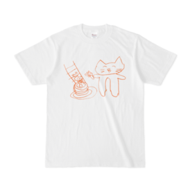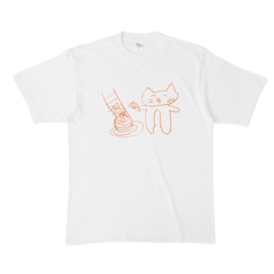 Tシャツ - XL - 白むすめさんの新作です。 左は初めてホットケーキにのる子猫 右は見守るお姉ちゃん猫です。 子猫はホットケーキの上で大きくなるそうです。(むすめさん談)