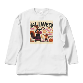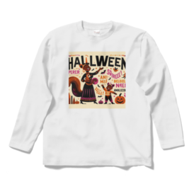 ロングスリーブTシャツ - XL - ホワイト愛らしいリスの親子が楽しげに遊ぶ様子を捉えました!秋の色づいた木々とともに、親リスと子リスがハロウィンの雰囲気を盛り上げています。 この商品はpixivFACTORYで作られた商品です。サンプル画像は完成イメージのため、実物と異なる場合があります。