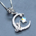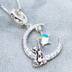 シルバー925 星にじゃれる猫が三日月に乗るモチーフのペンダント・ネックレス ムーンストーン アジャスター追加可