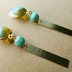 ---------------------------------------------------------------------------------- こちらは【黄海観光協会主催収穫感謝祭2024】・【エアブー感謝祭 -241123-】に出品の作品です。 十二国記の物語に出てくる色々なものから着想を得たり、その他オリエンタルなイメージのモチーフを使ったハンドメイドアクセサリーを作りました。 ---------------------------------------------------------------------------------- 金色のラメが封じられたツートンカラーのカボションを使用したイヤリングです。 真鍮のシンプルな短冊パーツにポイントとしてストーンビーズを繋げました。 ※金属アレルギー、メッキ加工が肌に合わない方は注文をお控えください。