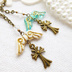 天使に祈りと宝を 両翼の2色のアクリルビーズに金古美カラークロスチャームを合わせて。 オペークホワイトと、クリアブルーの2色。 アンティークゴールドカラーの金具で、レトロな雰囲気も。 ウィッグネットに引っかけるタイプのヘアアクセです。 ショートからロングヘアまで、幅広く使えます。 カジュアルコーデには片方付け、 ドレッシーな衣装には左右に2つ使いするのもオススメです。 他のヘアアクセと組み合わせても。 人用フックピアス金具を使用しているので オーナー様のピアスとして兼用可能です。 幼SD~SD17位サイズ 10mmフィッシュフック 飾り部分:約5,5cm 両翼ビーズ(アクリル):横幅21mm チャーム:10×15mm 2mm幅刻みアズキチェーン 金具:金古美カラー(メッキ) ※受注製作となります。 ※材料在庫限り再仕入れ不可