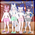 ・靴の着脱が可能、パーツメッシュを消去するとメニューからも削除されます ・一部カラーリングはUnity上で色変えが可能 ・MAで導入する場合メニューで着脱可能 ・体系変化シェイプキーはMAで自動適用されます ◆マテリアル数:2(カラバリ毎) ◆カラーバリエーション ・白ベース(C01) ・グレーベース(C02) それぞれに猫 犬 ウサギ SFの四種類あり ◆使用パラメーター 服:2 ◆メッシュ構造 ・SK_SQ_WER003_Pants △10854 ボトムス ・SK_SQ_WER003_Shirt △13456 トップス ・SK_SQ_WER003_Slippers △6072 スリッパ