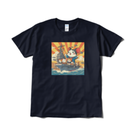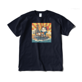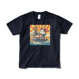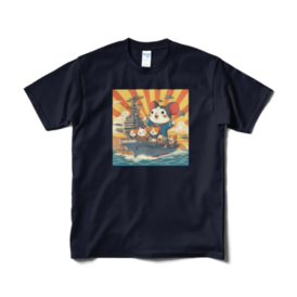 Tシャツ(短納期) - XL - ネイビーデグーファミリーが空母で海へ大冒険に出発しました!元気いっぱいのデグーたちが、海の青をバックに疾走する様子は、とっても愛らしいです。 この商品はpixivFACTORYで作られた商品です。サンプル画像は完成イメージのため、実物と異なる場合があります。