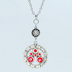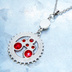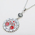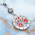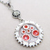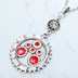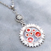 アンティークシルバー 時計と歯車を組合せたペンダントモチーフ マゼンタカラーレジン ラインストーン