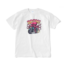 Tシャツ(短納期) - XL - ホワイトかわいらしいタコさん親子がバイクに乗って、楽しそうに疾走中!鮮やかな海のブルーをバックに、風を感じながらの素敵なおでかけ。 この商品はpixivFACTORYで作られた商品です。サンプル画像は完成イメージのため、実物と異なる場合があります。
