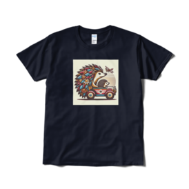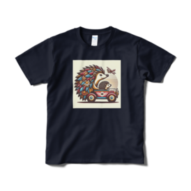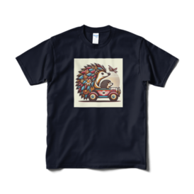 Tシャツ(短納期) - XL - ネイビーかわいらしいハリネズミの親子が、愛らしい旅に出発している瞬間をキャッチしました! この商品はpixivFACTORYで作られた商品です。サンプル画像は完成イメージのため、実物と異なる場合があります。