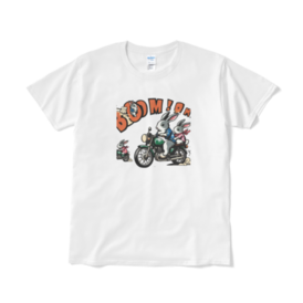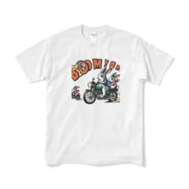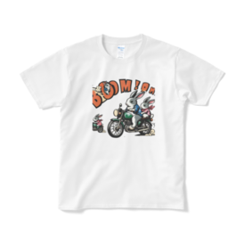 Tシャツ(短納期) - XL - ホワイトうさぎファミリーがバイクで疾走する姿は、まるで夢の中の冒険のよう! この商品はpixivFACTORYで作られた商品です。サンプル画像は完成イメージのため、実物と異なる場合があります。
