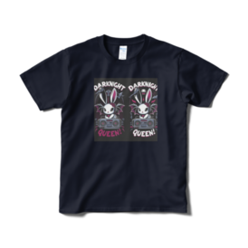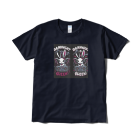 Tシャツ(短納期) - XL - ネイビー闇夜に輝く神秘的なウサギ女王が、暗い宇宙の中でラジオを持っている姿。彼女の優雅な姿勢と、いかにも魅力的な魅惑の目で、周囲の空気を一変させています。 この商品はpixivFACTORYで作られた商品です。サンプル画像は完成イメージのため、実物と異なる場合があります。