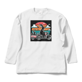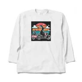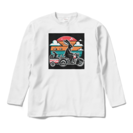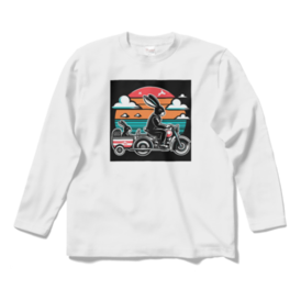 ロングスリーブTシャツ - XL - ホワイトウサギ親子がバイクで素敵な旅に出かけます!風を切って駆け抜ける姿はまるで子供たちの夢のよう。どこにでも連れていってくれるバイクに乗り、楽しい冒険が始まります。 この商品はpixivFACTORYで作られた商品です。サンプル画像は完成イメージのため、実物と異なる場合があります。