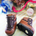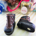10cm-12cmプライズぬい用のシューズです。 オビツ11も着用可能です。 シューズ本体は合皮製、靴底はゴムとなります。 靴底にはネオジム磁石をはめ込んでおりまして、鉄などの部分に立たせやすくなっています。 磁石につかない所でも自立は可能です。バランスをとって立たせてください。 ホームセンターなどで鉄の板(ジョイントプレートなどの名前で売っています)を用意すると 磁石につかない所でも安定して立たせることが可能です。ハンカチなどの下に入れると見栄えも良いと思います。 足を入れる時は少しねじるようにすると履かせやすくなります。 また、スケルトン手術を施して足のサイズが大きくなる場合は履かせにくい可能性がございます。 あらかじめご了承ください。 履き口の内径は 約3.5㎝となります。 KIYOHARA(清原株式会社様)のSサイズの(11㎝)ぬいボディ(足の周囲約4.5cm)だと、タイトめですが着用できます。 通常のプライズぬいなら(明日周囲が3cm-3.8cm)だとピッタリサイズとなります。 10-12㎝ぬい、オビツ11での着用感は写真をご参照くださいませ。 ねんどろいどどーるでの着用も可能ですが、足の甲の部分は高く感じ全体的に大きく見えるかもしれません。 写真と実物の色味は近づけるように撮影しておりますが、 ご覧いただく環境によって色のずれがございますことをご了承ください。 手作業での製作のため、ボンドの少量のはみだし、左右のバランスや大きさなどの誤差がございます。 ハンドメイドの誤差としてご理解くださいませ。