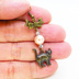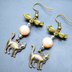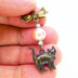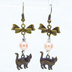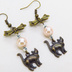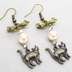 アンティークゴールド 歩き猫とリボンにベージュカラーのビーズを組合せた大人可愛いピアス サージカル可