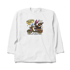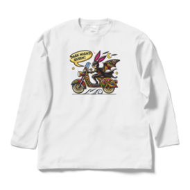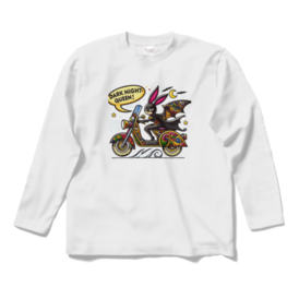 ロングスリーブTシャツ - XL - ホワイトふわふわの耳をピンと立てたウサギ女王が颯爽と登場!彼女はバイクを駆り、冷たい風を切って闇の中を疾走しています。 この商品はpixivFACTORYで作られた商品です。サンプル画像は完成イメージのため、実物と異なる場合があります。