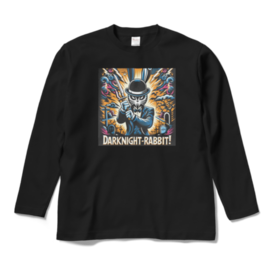ロングスリーブTシャツ - XL - ブラック穏やかな闇夜の静寂の中、神秘的なウサギが一匹、墓場の前に佇んでいます。彼はその美しい毛並みの中に深い使命を抱え、剣をしっかりと携えています。 この商品はpixivFACTORYで作られた商品です。サンプル画像は完成イメージのため、実物と異なる場合があります。
