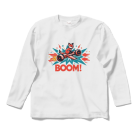 ロングスリーブTシャツ - XL - ホワイトキツネさまがカラフルな飛行機に乗って、空の旅に出発!真っ青な空の下、軽やかな雲を背景に、キツネさまは嬉しそうに風を感じています。 この商品はpixivFACTORYで作られた商品です。サンプル画像は完成イメージのため、実物と異なる場合があります。