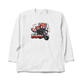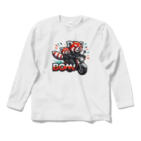 ロングスリーブTシャツ - XL - ホワイト愛らしいレッサーパンダの親子が、バイクに乗って風を切って疾走する姿は、見ているだけで癒される光景です。 この商品はpixivFACTORYで作られた商品です。サンプル画像は完成イメージのため、実物と異なる場合があります。