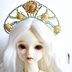 頭囲18〜19cmドール用ティアラ 国産ガラスビーズを使った透明感のあるカチューシャ 中心の装飾ボタンや薔薇で高級感のある髪飾りになっていますので、ドレス等におすすめです。 写真4枚目のパールのカチューシャは商品に含まれません。 サイズ:約 縦6.8cm 横幅9cm カチューシャ部分6.5cm ※注意:商品にドール・ウィッグ、衣装・アクセサリーは含まれません。