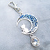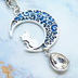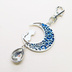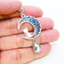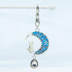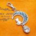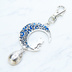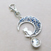 アンティークシルバー ブルーレジンで彩色した猫が座る三日月モチーフのキーホルダー 金具変更可