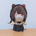 にじぬいに着せることができるチェック柄の洋服です。 ブラウスは背面のマジックテープを使って、着脱できます。 スカートはホックを、パンツはゴムをウエストに仕込んでいます。