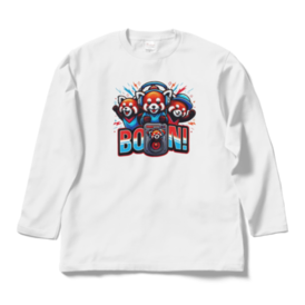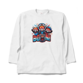 ロングスリーブTシャツ - XL - ホワイト音楽のリズムに合わせて、レッサーパンダファミリーが一緒に楽しむ姿は、まるでパーティーの真っ最中! この商品はpixivFACTORYで作られた商品です。サンプル画像は完成イメージのため、実物と異なる場合があります。