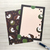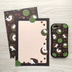 便箋: A5 横罫 9mm 17行 上質紙 両面印刷 封筒: 洋2 カマス貼 トレーシング 無地 ▼ レターセット 便箋:10枚入り 封筒: 3枚入り ※便せん10枚のうち1枚は2つ折りして封筒に入れています。 ▼便箋のみ 便箋:18枚入り (通常16 + オマケ2 のお得ver) ※色味について 印刷時に色味の誤差が数%発生することは承知しているのですが(どの印刷業者さんでも起きる誤差です) 今回、便箋オモテ面の枠色が理想の焦げ茶よりもやや黒寄りの結果でしたので「便箋のみver」は2枚追加したお徳用になっています。