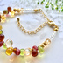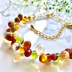 今すぐ使えて秋にも使えるアクセサリー.。゚ ガラスの透明感が涼し気で夏にも使えて、実りの秋をイメージしたカラーで秋まで長く使えます(*^^*) ブドウ、栗、林檎、梨…色々と思い出して思わず食べたくなっちゃう♪そんな美味しそうなアイテムです。 搾った果樹のような雫型のチェコガラスをたっぷりと使い、メタルビーズとガラスビーズをプラスしました。 立体感のあるブレスレットで周りとの差を付けちゃいます(*^^*) 雫型のチェコビーズをくるくる回すことで好きな立体感を出すことが出来るので、その日の気分でお楽しみください♪ 【サイズ】約16~19.5cm 各パーツについては写真5枚目参照 オーダーで小さめ、大きめを制作することも可能です。 お気軽にご相談くださいませ(^-^) ハンドメイド品であることをご理解頂いた上でご購入くださいませ。