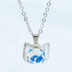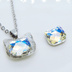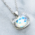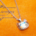 シルバーカラー 猫フェイスモチーフのムーンライトクリスタルのペンダントネックレス レジン 長さ調整可 ステンレス可