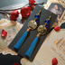【中華風】双喜紋とガラス玉のピアス(イヤリング)(水色)【チャイナ】【ダブルハピネス】