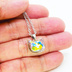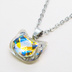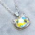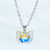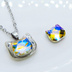 シルバーカラー 猫フェイスモチーフのヘブンライトクリスタルのペンダントネックレス レジン 長さ調整可 ステンレス可