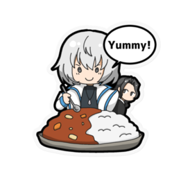 ステッカー - 100 x 100 (mm)この商品はpixivFACTORYで作られた商品です。サンプル画像は完成イメージのため、実物と異なる場合があります。 カレーを食べている蒼真くんのクリアステッカー。 有角さんも気になる様子。