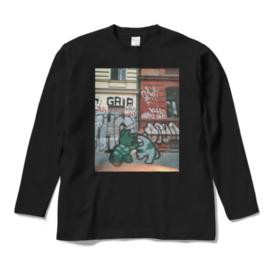 ロングスリーブTシャツ - XL - ブラック荒くれ者 in ドイツ 生地:綿 100%(杢グレー綿80%・ポリエステル20%) 生地の重さ:190 g/㎡(5.6 oz) 糸の太さ:17 /- 織り:天竺 印刷方式(淡色カラー):インクジェット印刷 印刷方式(濃色カラー):ホワイトインクジェット印刷