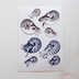 生きている化石 オウムガイの転写タトゥーシールです。 画面上、白地に見える部分は実際には透明になります。 貼り付けたときには、写真とは左右反転します。 古生代から変わらぬ姿で生き続けるオウムガイの図柄4種をタトゥーシールにしました。 全8ピース 図柄のサイズ 右上のオウムガイで幅48mm。小さいサイズで幅28mm。 水で湿らせて貼り付けるだけなので簡単。はがすこともすぐできます。 タトゥーシールとして肌につける以外にも、プラスチックや金属など表面がなめらかなものに貼り付けられます。 「透明シール オウムガイ・カブトガニ・メンダコ」「レジン封入用フィルム オウムガイ・カブトガニ・メンダコ」 も出品しています。 【素材】 市販の転写シール 透明タイプ 【サイズ】 幅100×高さ148mm 【購入の際の注意点】 表面の粗いものにはきれいに転写できません。 水を使って転写させるため、紙など水に弱いものには転写できません。 肌に転写した場合は一日を目安にはがしてください。 シートは湿気を吸いやすい性質があるので、なるべく早めにお使いください。