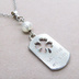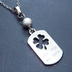 シルバーカラー 四つ葉のクローバーのあるタグプレートペンダントネックレス 長さ調整可