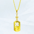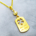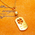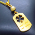 ゴールドカラー 四つ葉のクローバーのあるタグプレートペンダントネックレス 長さ調整可