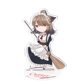 アクスタ 全長10㎝メイド服のカッターちゃんグッズが出来ました! 台座は髪飾り(ピン)をイメージしています。 同じデザインのアクキーもありますので、欲しいグッズを選んでくださいね。