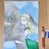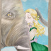 手描きイラスト原画「象と少女」