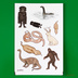 UMA(未確認生物)のイラストを転写タトゥーシールにしました。 画面上、白地に見える部分は実際には透明になります。 貼り付けたときには、写真とは左右反転します。 以下の有名なUMA(未確認生物)7種をイラストで描き、サイズにバリエーションをつけて収録しました。 ネッシー、ヒバゴン、ジャッカロープ、モンゴリアン・デスワーム、ビッグフット、ツチノコ、モケーレムベンベ 全9点(サイズ大 7点、サイズ小 2点) 絵柄のサイズ サイズ大 長辺40〜60mm、サイズ小 長辺25mm 水で湿らせて貼り付けるだけなので簡単。はがすこともすぐできます。 タトゥーシールとして肌につける以外にも、プラスチックや金属など表面がなめらかなものに貼り付けられます。 【素材】 市販の転写シール 透明タイプ 【サイズ】 幅100×高さ148mm(はがきサイズ) 【購入の際の注意点】 表面の粗いものにはきれいに転写できません。 水を使って転写させるため、紙など水に弱いものには転写できません。 肌に転写した場合は一日を目安にはがしてください。 シートは湿気を吸いやすい性質があるので、なるべく早めにお使いください。