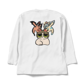 ロングスリーブTシャツ - XL - ホワイト猫は常に葛藤しているのですTシャツ 生地:綿 100%(杢グレー綿80%・ポリエステル20%) 生地の重さ:190 g/㎡(5.6 oz) 糸の太さ:17 /- 織り:天竺 印刷方式(淡色カラー):インクジェット印刷 印刷方式(濃色カラー):ホワイトインクジェット印刷