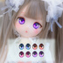 自作デザインのドール用アイです。 土台に用紙を貼り付けレジンコーティングを施しています。 素人の制作物です。 用紙のシワ、ヨレ、欠け、中央からのズレ、気泡やチリの混入等がある場合がございます。曲面に貼る都合上シワが入っている場合があります。 また、レジンのムラが特に土台端にある場合がございます。 A品は虹彩の欠陥が目立ちにくいものを選んでおりますが、小さなシワが入っている場合があります。検品も素人のものになりますことをご了承ください。 B品は虹彩にできた欠陥が容易に視認できるものになります。ご理解の上でご購入くださいますようお願い致します。 土台裏側部分に擦れ傷がある場合がございますが、パーツ購入時よりあるものです。品質分けする際にも考慮しておりません。予めご了承ください。 使用しているレジン等は経年劣化や紫外線により黄変、品質が劣化致します。消耗品としてお考えください。 環境により、色合いなどの見え方に違いがある場合がございます。 至らない点もあると思いますが、雰囲気を気に入って頂ければ幸いです。