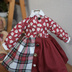 赤い小花柄×レッドデニム×タータンチェック♡⃛ これからの季節にぴったりなレッドカラーのワンピースを仕立てました。 大好物のクリームパンをおなかいっぱい食べたい? おおきなウサギのお腹でぐっすり眠りたい? 朝起きたら猫になってないかなぁ? お願いごとが叶うとウワサの最強ワンピ!? (な〜んてね♥) 叶ったらこっそり教えてね✳︎