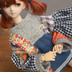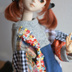 いろんな色柄のはぎれを合わせて✴︎アシンメトリーなデザインが面白かわいいチュニックをつくりました。 向かって右肩には黒ギンガムチェックのBIGフリル❣️ バランスよく配色して左右非対称でもとびきりキュートな仕上がりです♡⃛ 長めの丈でおしりまで隠れます。1枚で個性派ミニワンピ風、もちろんボトムをあわせても◎いろいろコーデしてみて☆★! 後ろでスナップボタンで留めて着せます。