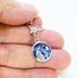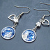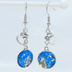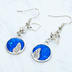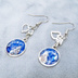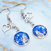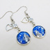 ブルーレジンで彩色した蝶の羽と小さな花モチーフのコンパクトなピアス オープンハート サージカル可
