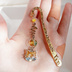 ちょこんと可愛くひげが生えた猫ちゃんの小さめのレジン枠をアクアブルー色の乱切りホログラムや淡いパープル色のマーメイドホログラム、ライトブルーやイエロー色のシェルフレークや金箔風ホイルフレーク、ラメなどをUVレジン液とイエロー色のカラーレジン液で封入してオリジナルパーツに仕上げました。 その猫ちゃんをメインにチェコメロンビーズが真ん中で揺れるサークルフープや心電図風パーツなどを合わせたお洒落な文庫本サイズのブックマーク/しおりとなっております☆ メインのお色は常夏の南の島をイメージしたアクアブルーとイエロー色の2色、ゴールド金具と合わせて涼しげでポップなイメージでまとめました☆ ブックマーク本体のサイズはおおよそ8cm程となりますので、特に小さめサイズの文庫本やページ数があまり多くない単行本などに挟むとぴったりのサイズだと思います♪ 猫ちゃんのレジン枠の内側部分はUVレジンを使用してすべて手作りで作っておりますので、まったく同じ色合い、デザインでのパーツは新たに作る事は出来ません、よって写真の作品はこちら1点のみとなり、世界で一つだけの作品になります。 (※似ている色合いで再度作る場合は御座います) 猫のモチーフがお好きな方に特にぴったりの作品となっております☆ ※こんな方におすすめ♪ *大切な方へのプレゼントに *猫のモチーフがお好きな方に *レジン作品がお好きな方に *読書好きな方に ☆ひげ猫ちゃんのレジン枠 約1.5cm (パープル色のマーメイドホログラム、ライトブルーとイエロー色のシェルフレーク、ライトブルーとマンゴー色の乱切りホログラム、ゴールド色のクラッシュジェム、金箔風ホイルフレーク、シルバー色のお星様モチーフのホログラム、ホワイト色のラメとUVレジン液とイエロー色のカラーレジンと一緒に☆) ☆チェコメロンビーズ エメラルド×トパーズ 8mm ☆ガラスビーズ オーシャンブルー ボタンカット 4mm ☆ガラスビーズ オペークイエロー ボタンカット 4mm ☆心電図風パーツ ☆サークルフープ ☆丸カン ☆9ピン ☆Tピン ☆ブックマークパーツ(ゴールド) 長さは約8cmとなっております。 パーツ部分の長さは約7cmとなっております。 ※直射日光に当たり続けると色が変色または薄くなる場合が御座いますので、出来るだけ日光が当たらない所で保管して頂きますようにお願いいたします。 (また箱の中や袋に入れて頂くだけでも変色を少しでも抑える事が出来ます。)