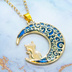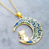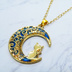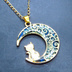 ゴールドカラー ブルームーン 猫が座る三日月チャームのネックレス 長さ調整可 ステンレス可