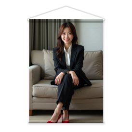 タペストリー - B2縦落ち着きと洗練されたプロフェッショナルな魅力を描いたタペストリー。 知性と優雅さを象徴するスーツスタイルと、女性らしさを引き立てる赤いヒールのコントラスト。 柔らかな笑顔が空間に親しみやすさを加え、見る人を癒します。 この商品はpixivFACTORYで作られた商品です。サンプル画像は完成イメージのため、実物と異なる場合があります。