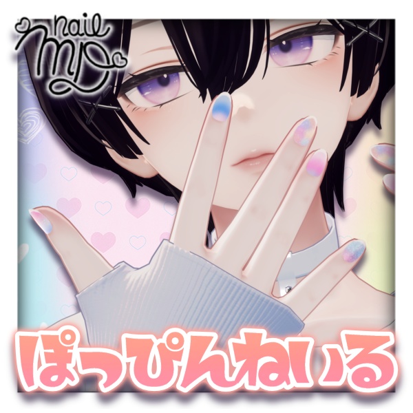 ゆめかわスタイルを取り入れた可愛らしく幻想的な仕上がりのネイルチップです。 パステルカラーのブルーとピンクで美しいグラデーションを描き、キラキラと輝くラメが全体を華やかに演出しています。 シンプルでありながらも、夢のようなファンタジックな雰囲気が魅力的なデザインとなっています。ゆめかわ好きの方にぴったりのネイルです! ※アバターは商品に含まれません。 こちらは Minuet_Dollさまの 【販売OK!】シェアできる汎用ジェルネイルチップ『MDollnail』【VRChat】 https://minuetdoll.booth.pm/items/3114352 を利用し制作したネイルテクスチャです。 当商品には3Dモデル及びネイルテクスチャ・設定済マテリアルが同梱されておりますので、当商品のみご購入いただくだけでご利用いただくことができます。 森羅対応prefabが付属しており、アバター直下にドラック&ドロップするだけで着用できます。 汎用ジェルネイルチップ『MDollnail』を使用しているため森羅以外のアバターにも着用が可能ですが、位置やサイズの調整が必要になります。 ネイルの着用には ・ModularAvatar ・liltoon が必要になります。