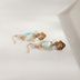 土星チャームとサークルフープのマーブルライトブルーカラーのピアス/イヤリング