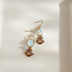 ストーンが付いた可愛い土星チャームにちょっぴりだけ大きめサイズのサークルフープの中にぷっくりした形が可愛いまるでマーブルのようなライトブルー色のしずく型チェコビーズ、2種類の小さめサイズのガラスビーズをじゃらじゃらと合わせたお洒落なピアス/イヤリングとなっております☆ メインのお色はまるで冷たいアイスクリームのような淡いブルー色、ゴールド金具と合わせてふんわり涼しげな色合いにまとめました☆ 金具込みで4cm程と大きすぎず、小さすぎない丁度良い大きさの作品となっておりますので、耳元のワンポイントになると思います♪ w色がお好きな方や宇宙モチーフがお好きな方に特におすすめの作品となっております☆ アレルギー対応のピアスやイヤリングへの変更についてはご注文時にオプションよりご希望金具をお選び下さい。 ☆しずく型チェコビーズ ライトブルー×ミルキーホワイト 9x6mm ☆ガラスビーズ オパールホワイト ボタンカット 4mm ☆ガラスビーズ アラバスターライトブルー ボタンカット 4mm ☆ストーン付土星のチャーム ゴールド ☆サークルフープ ゴールド 約12mm ☆Tピン ☆三角カン ☆丸カン ☆ピアス金具(フック式*ゴールド) 長さは約4cmとなっております。(1cm程のピアス金具を含む)